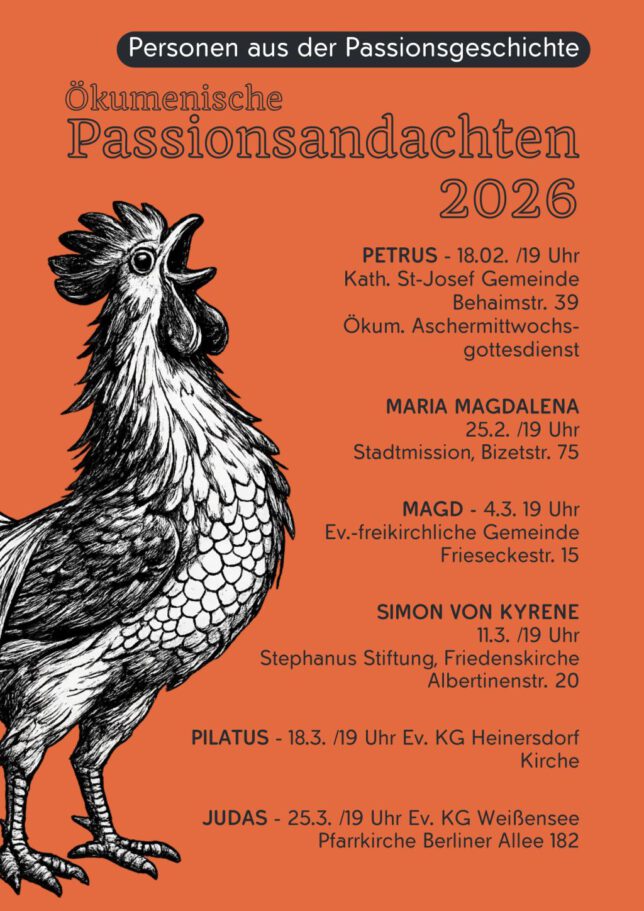 In der Passionszeit laden wir herzlich zu den regionalen Passionsandachten ein. Innehalten, hören, beten – gemeinsam gehen wir den Weg auf Ostern zu.